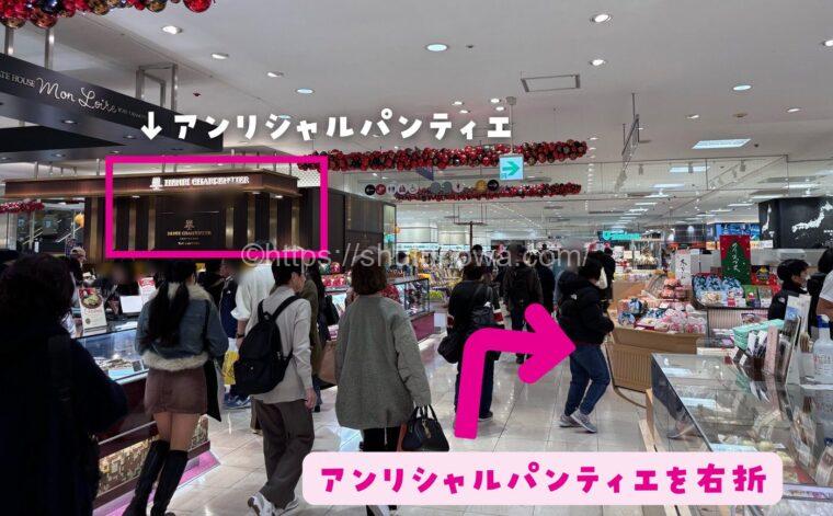 そごうに入ったら、アンリシャルパンティエの手前で右折します。