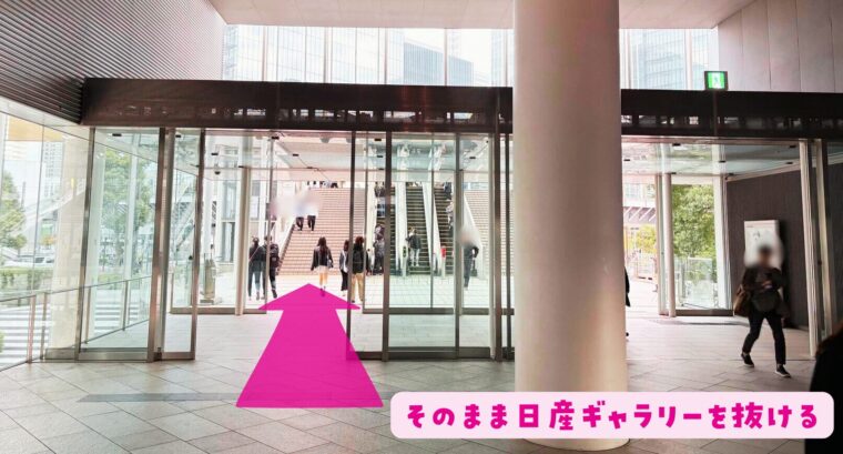 左手の橋を渡り、そのまま日産グローバルギャラリーの中を通ってまっすぐすすみます。