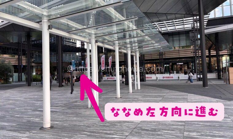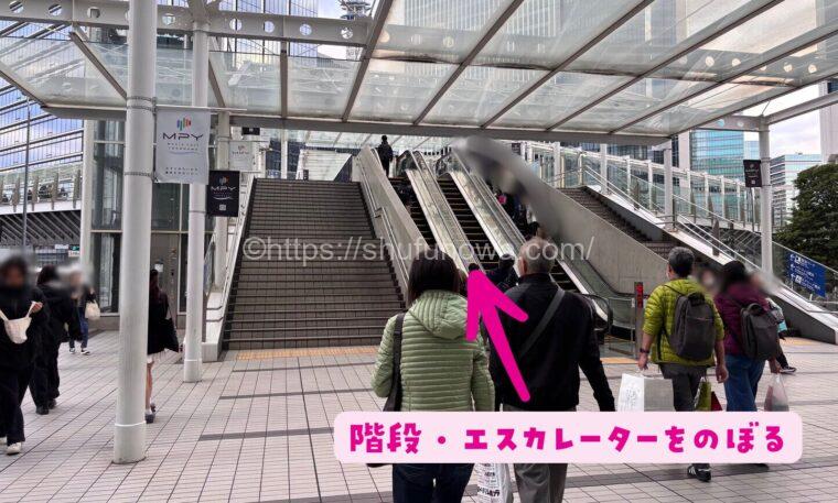 日産グローバルギャラリーを抜けたら、目の前にあるエスカレーターをのぼって正面の道をすすみます。