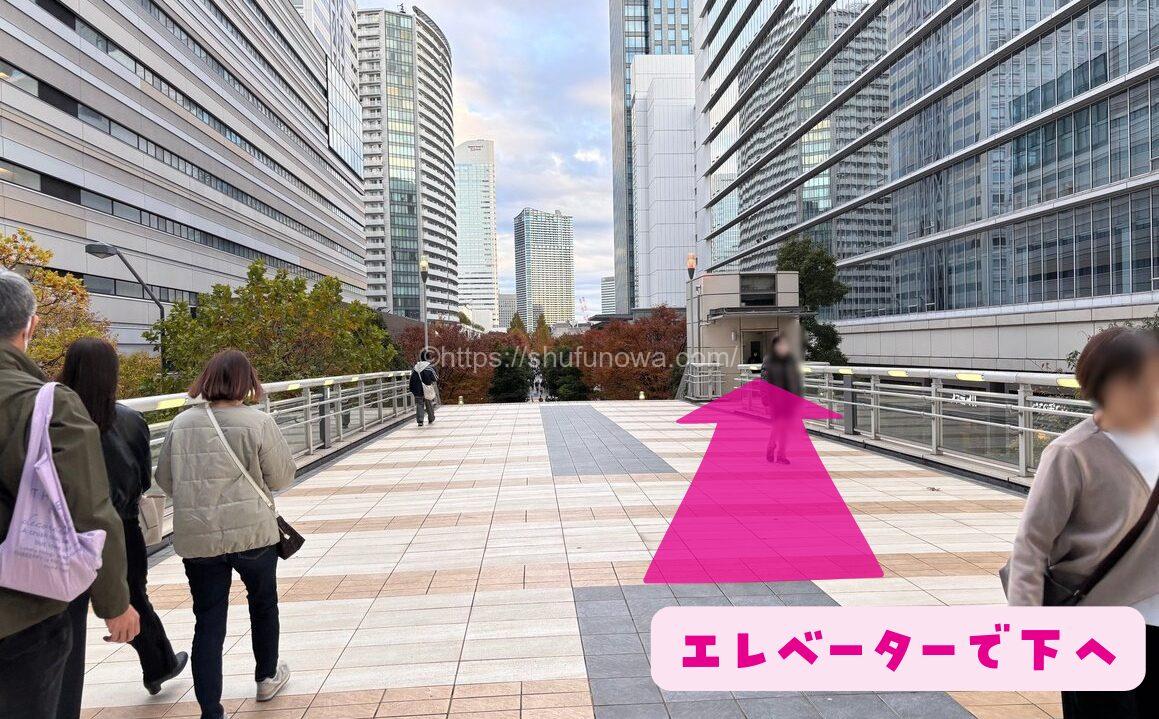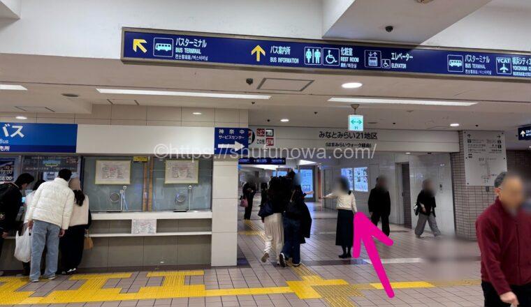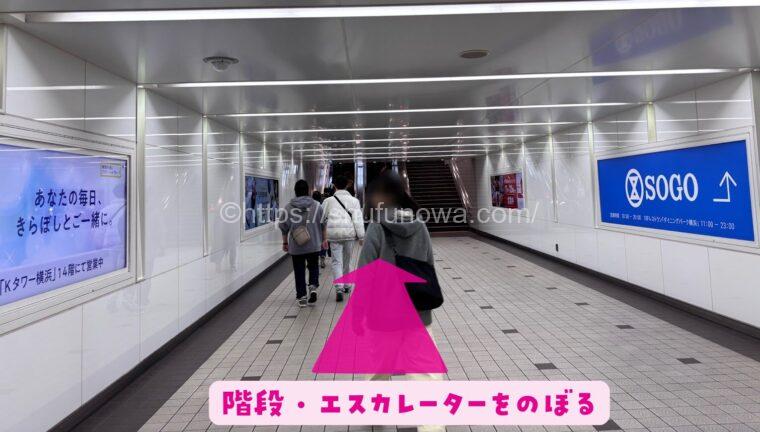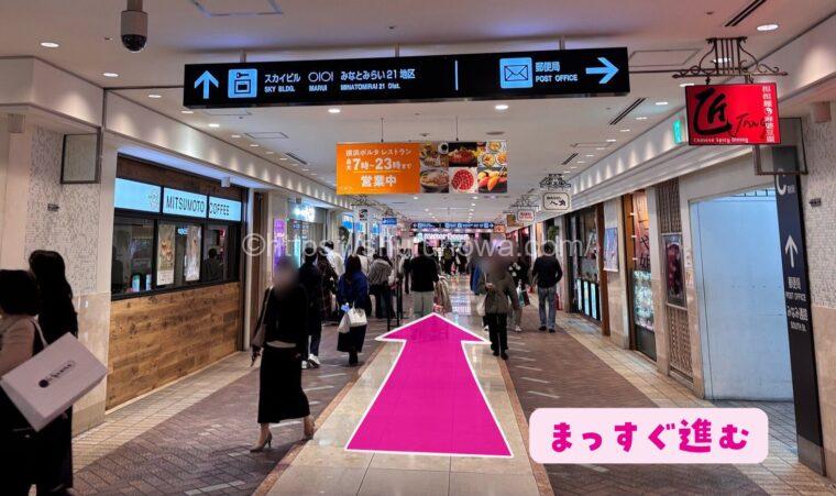 そごうの入り口は入らず、右手にあるエスカレーターを上り、そのまま「みなとみらい21地区」と書かれた通路をまっすぐ進みます。