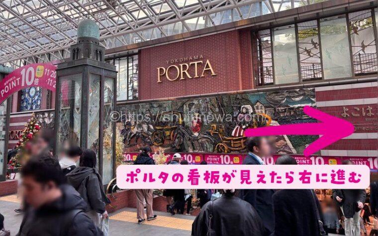 まず、横浜駅東口改札を出て、「ポルタ」に向かいます。