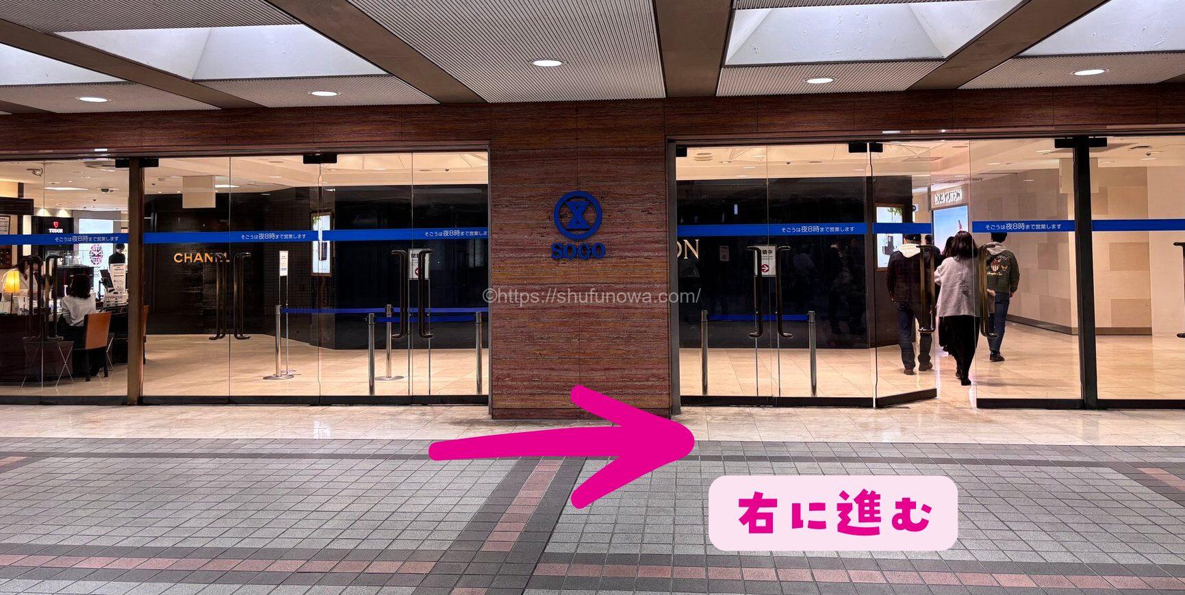 ③そごう入口横のエスカレーターを上ってまっすぐすすむ