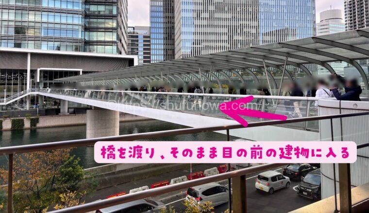そのまままっすぐ歩くと橋が見えるため、橋を渡って日産グローバルギャラリーの中を通りましょう。